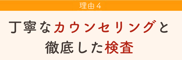 当院では、患者様一人ひとりのお悩みや症状にしっかり向き合うため、丁寧なカウンセリングと徹底した検査を大切にしています。