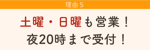 当院は、忙しい現代人のライフスタイルに合わせ、土日も休まず営業しています。