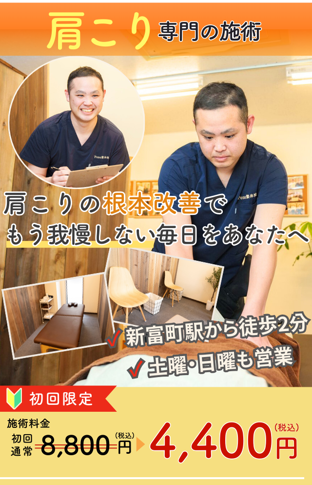 一人ひとりに寄り添いながら、丁寧に身体のケアをさせていただきます。肩こりに悩まない生活を目指して、ぜひ一歩を踏み出してみませんか?