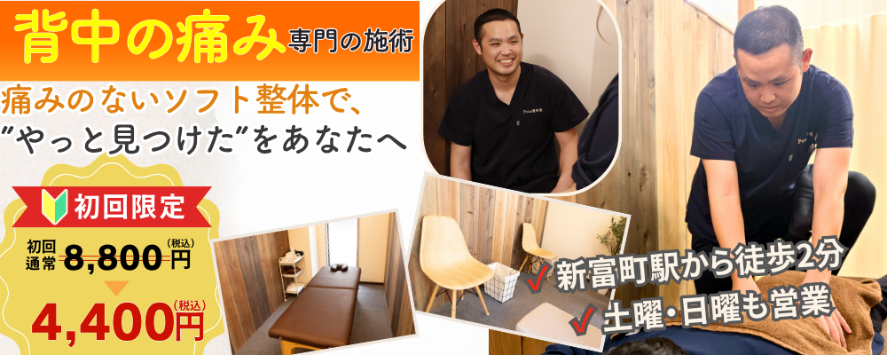 一人ひとりの症状に合わせた丁寧な施術で、背中の痛みの改善をお手伝いします。快適な日常生活を取り戻しましょう!