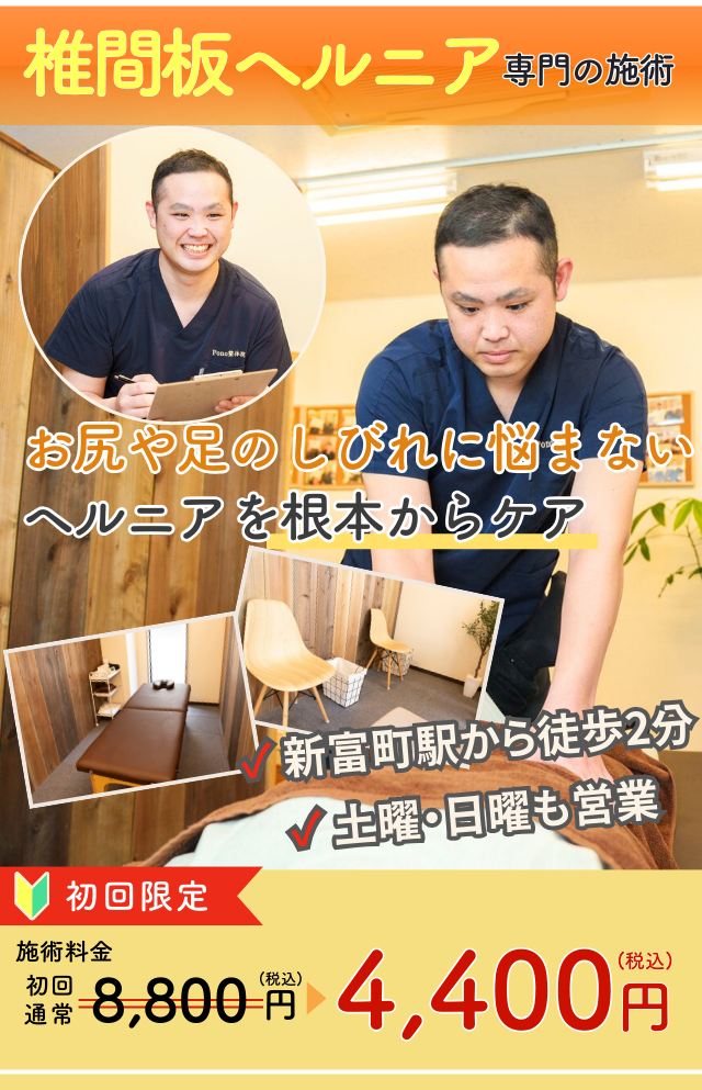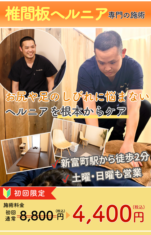 一人ひとりの症状に合わせた丁寧な施術で、椎間板ヘルニアの改善をお手伝いします。快適な日常生活を取り戻しましょう!