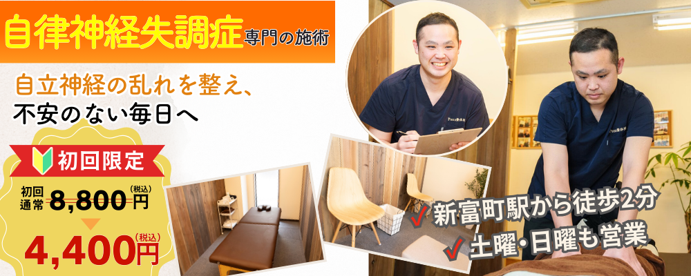 当院では、薬でも改善が難しい重度の自律神経失調症の方に対して、筋肉や骨格を調整し、全身のバランスを整えることで自律神経を正常な状態に導く整体を行っています。